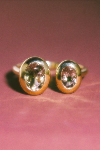 Gamme Blanche célèbre une beauté minimaliste, sensuelle et confidentielle, loin des conventions de la joaillerie classique, en sublimant l'or 9 carats et les pierres atypiques.