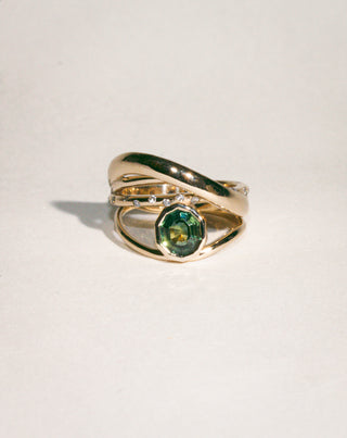 Bague en or 14 carats, Saphir "Sarcelles" et diamants champagne
